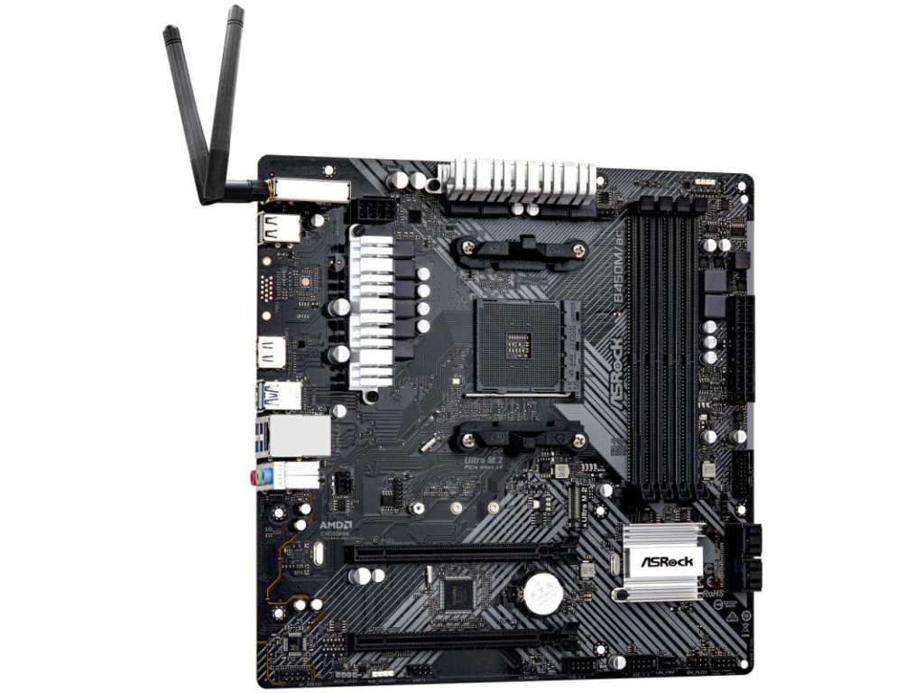 ASRock B450M AC R2.0 (AM4, amd B450, 4xDDR4 3200, 4xSATA3, WIFI, USB3.1, HDMI, mATX)