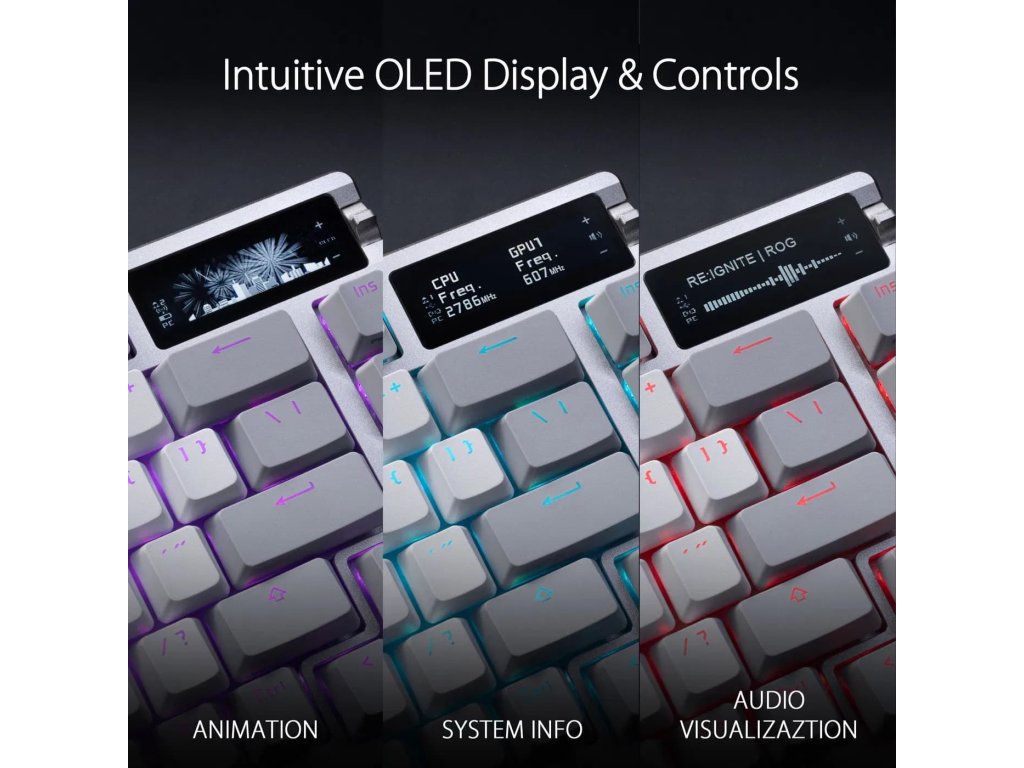 ASUS ROG Azoth Moonlight White – US kombinuje výkonnost špičkové herní klávesnice s elegantním vzhledem a maximální funkčností. Skvělá volba pro náročné hráče, kteří chtějí výbavu bez kompromisů.
