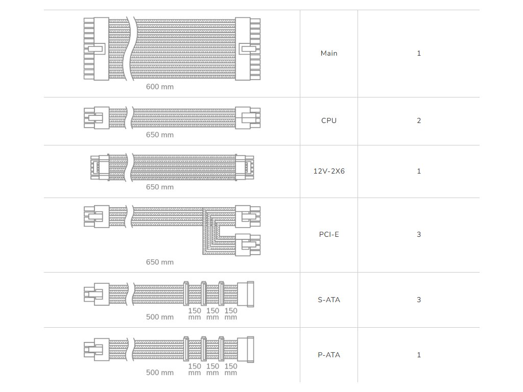 GLE podporuje specifikaci PCIe 5.1 a poskytuje stabilní výkon i pro nejmodernější grafické karty. Nativní modulární konektor PCIe 12V-2X6 s délkou 650 mm zajišťuje dostatečnou rezervu při instalaci a eliminuje riziko nesprávného zapojení – bez potřeby adaptéru 6+2 pin.