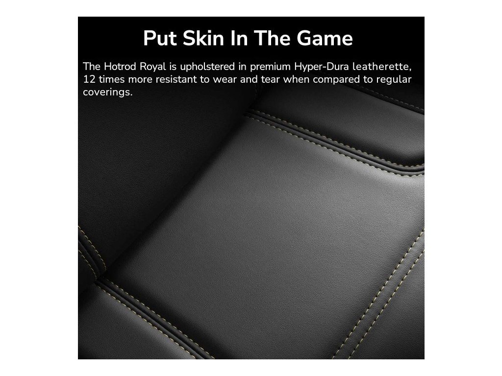 Hotrod Royal je čalouněna prémiovou koženkou Hyper-Dura, která je 12krát odolnější vůči opotřebení ve srovnání s běžnými potahy.