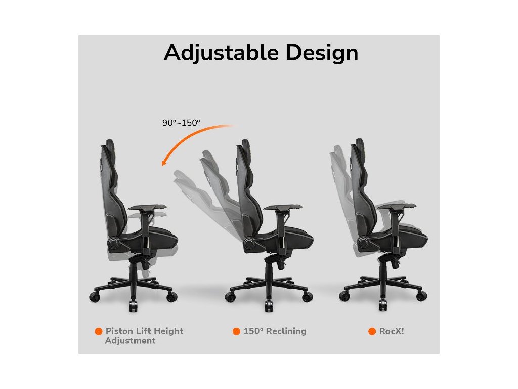 Nastavení vám nabízí možnosti sklonu opěradla od 90° do 150°.