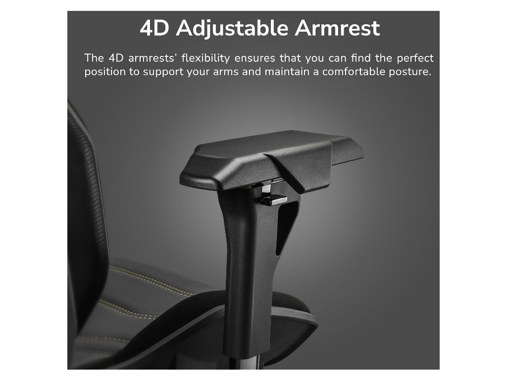 Flexibilita 4D područek Vám umožní najít perfektní polohu pro podepření paží a nastavit pohodlnou pozici držení těla.