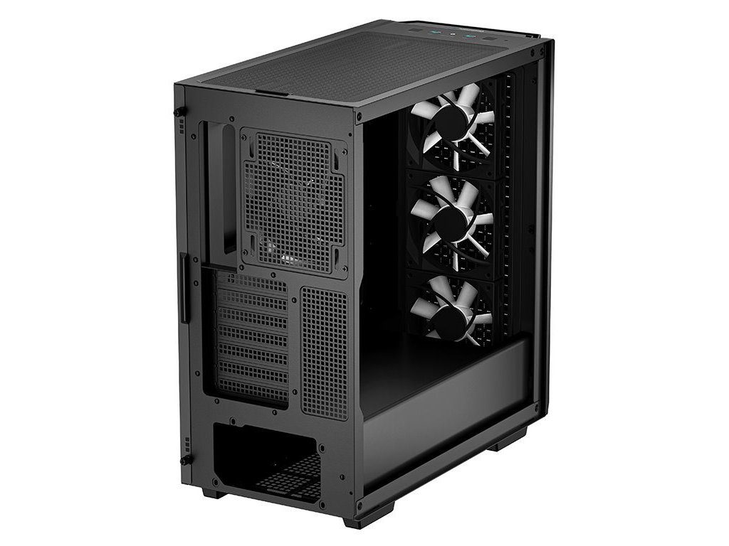 DEEPCOOL CG560Skříň formátu Middle Tower s průhlednou bočnicí nabízí dvě 2,5" pozice pro SSD disky a dvě 3,5" pozice pro pevné disky. Na horním panelu se nachází dva USB 3.0 porty a kombinovaný port sluchátek a mikrofonu. Skříň je vybavena jedním 140mm ventilátorem na zadní straně a třemi 120mm ventilátory s ARGB podsvícením na přední straně. Důmyslné řešení umožňuje pohodlné umístění až 360 mm dlouhého výměníku vodního chlazení na přední straně. Ve skříni je dostatek prostoru pro chladič CPU do výšky až 175 mm a grafickou kartu o délce 380 mm. Skříň je dodávána bez zdroje. Součástí je také sada magnetických prachových filtrů.