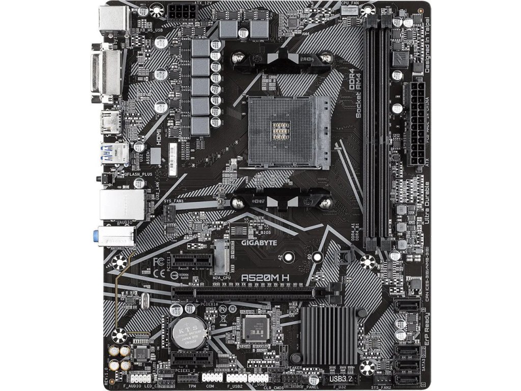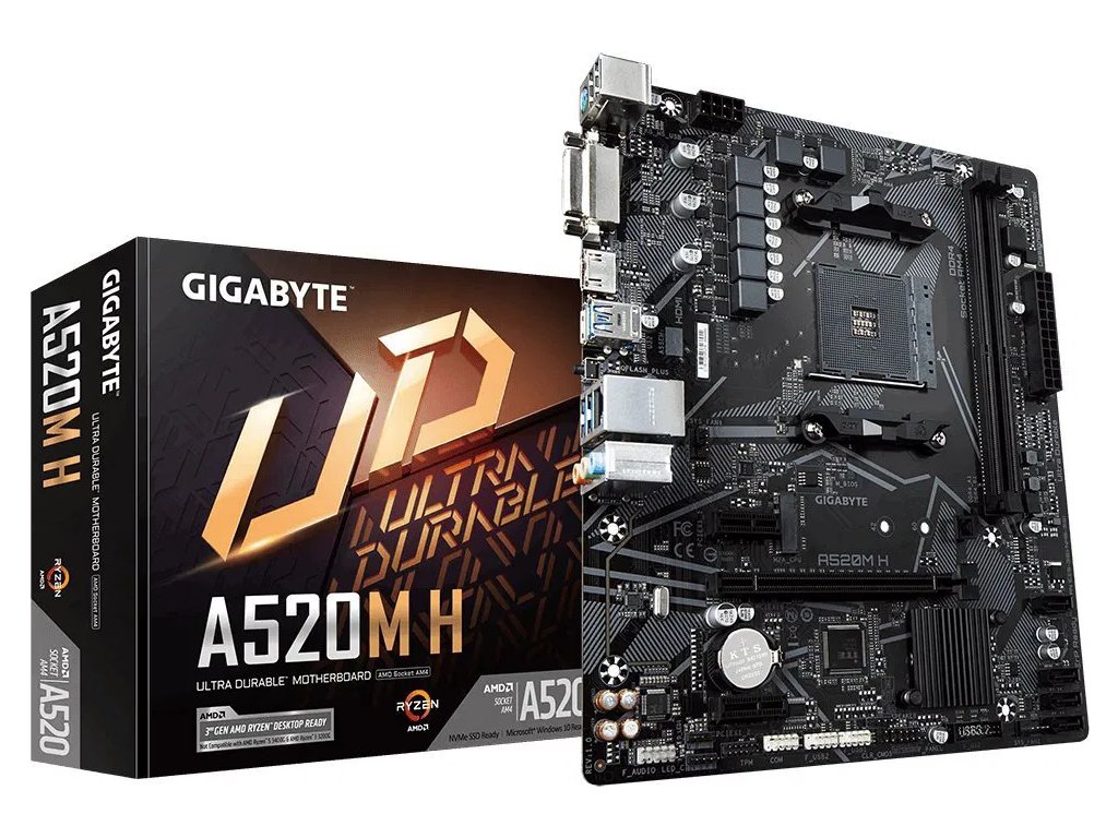 Základní deska AMD A520, socket AMD AM4 PCI Express 3.0, 1× PCIe x16, 2× PCIe x1, 2× DDR4 5100MHz (OC), 4× SATA III, 1× M.2, HDMI, DVI, LAN 1Gbps, 8kanálová zvuková karta, formát mATX