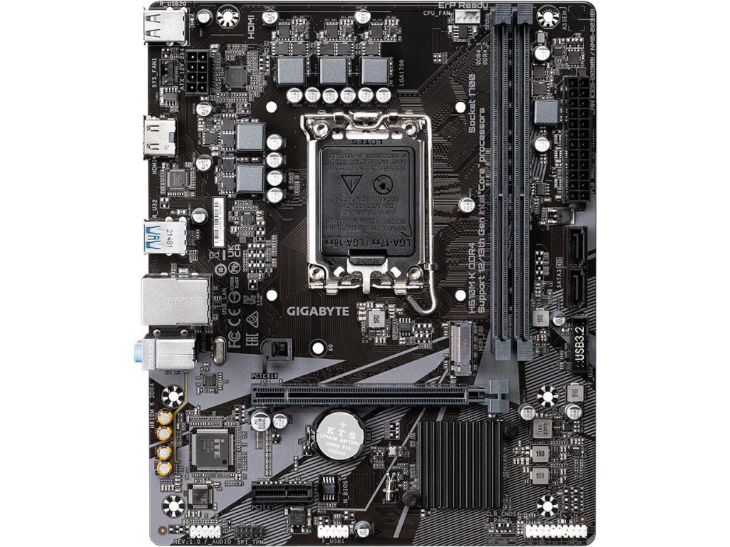 Základní deska Intel H610, socket Intel 1700 PCI Express 4.0, 1× PCIe x16, 1× PCIe x1, 2× DDR4 3200MHz (OC), 2× SATA III, 1× M.2, LAN 1Gbps, 8kanálová zvuková karta, formát mATX