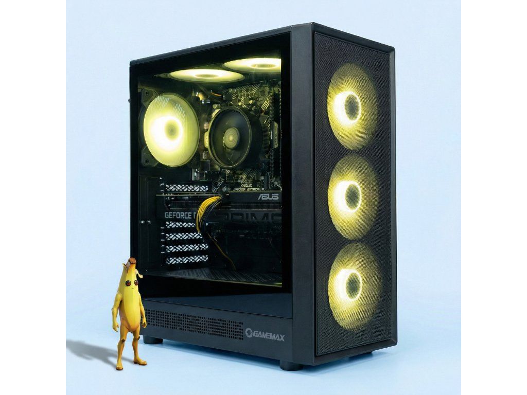 Sestava obsahuje 500W zdroj a skříň GameMax Storm 2 s RGB podsvícením, která zajišťuje dobré chlazení a moderní vzhled.