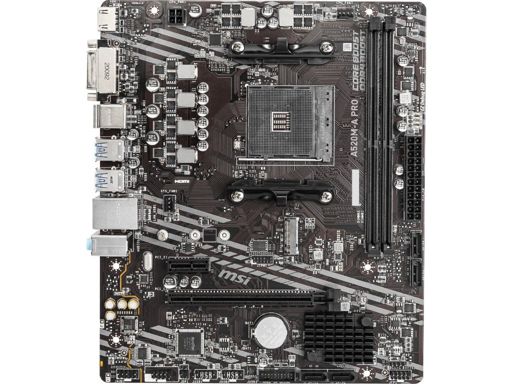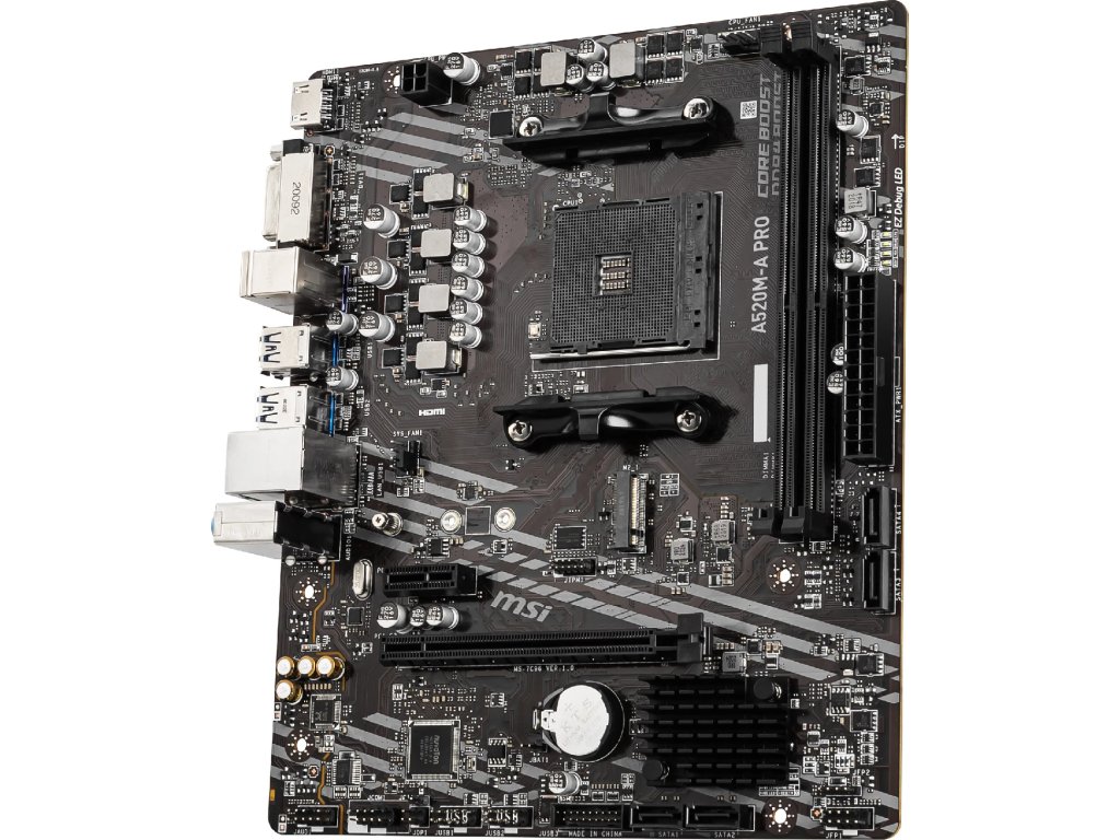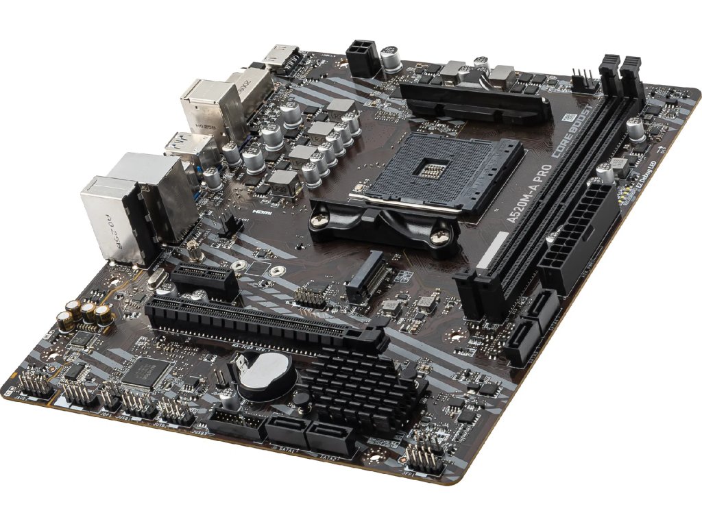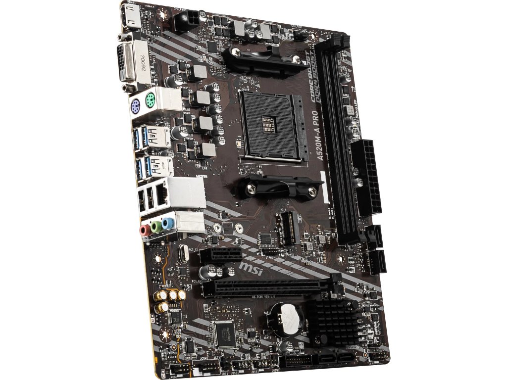 Základní deska AMD A520, socket AMD AM4 PCI Express 3.0, 1× PCIe x16, 1× PCIe x1, 2× DDR4 4600MHz (OC), 4× SATA III, 1× M.2, HDMI, DVI, LAN 1Gbps, 8kanálová zvuková karta, formát mATX